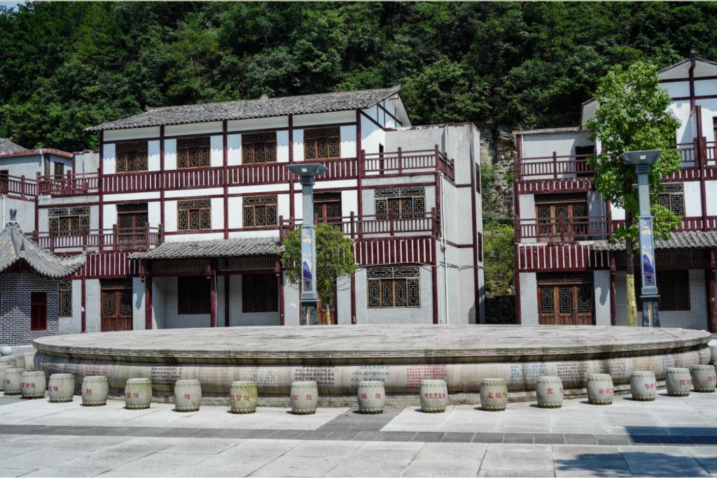 之后实践团成员一行人来到了歧山村的“哈格咋广场”。在广场的两侧均匀的分布着具有特色的民族房屋,广场中央分布着一个大石桌和56个石凳,每个石凳上都刻印着不同的民族,寓意着中国56个民族团结一心,一起建设美丽中国的决心。广场的尽头树立着一个土家族吊脚楼,透露着浓浓的民族气息。据陈书记介绍,即将到来的土家族的女儿会将在这里举办,届时将会开展喝油茶汤、唱土家山歌、跳摆手舞等古朴的民风民俗活动。