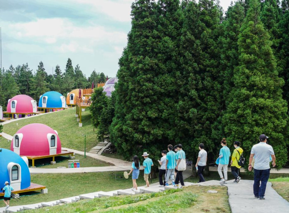 随后实践团又参观了歧山村农旅融合发展的支柱产业——岐山草场。岐山草场主要以高山森林风光、山顶草场为主,是度假、休闲、观光的好去处。景区内至今还保持着成片的原始森林,是难得的旅游胜地。草场内还修建了许多栋星空房和泡泡屋,为迎接即将到来的参加音乐节的游客做好了准备,这些都对该村的旅游业有着极大的推动作用。