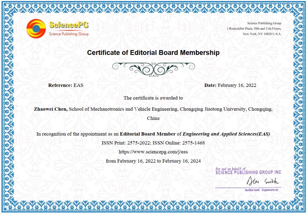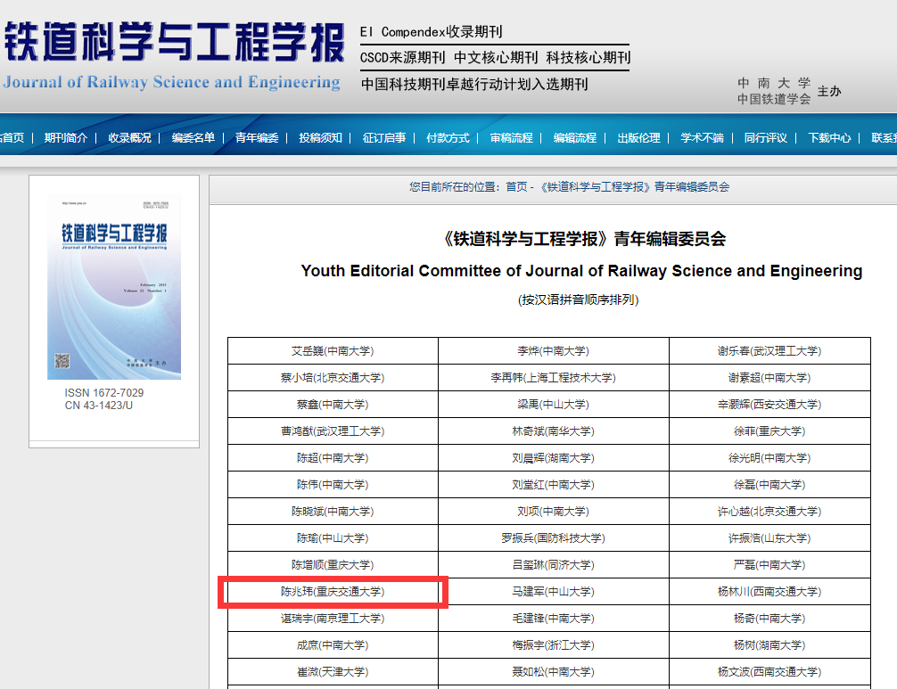 近期,MK体育陈兆玮副教授入选国际期刊《Engineering and Applied Sciences》编委(共61名)。此前陈兆玮副教授已入选铁道领域行业权威期刊《铁道科学与工程学报》青年编委(共136名)和《华东交通大学学报》青年编委(共68名)。陈兆玮副教授的成功入选是同行专家对其在轨道系统动力学及控制领域取得成果的认可,为青年教师起到了良好的榜样作用,也对车辆工程、轨道工程等专业的发展起到了推动作用。