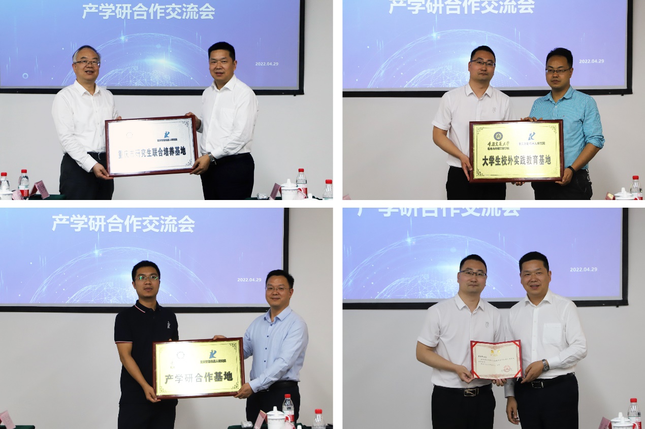 会上,还隆重举行了“MK体育—重庆智能机器人研究院重庆市研究生联合培养基地”“MK体育—重庆智能机器人研究院产学研合作基地”和“MK体育老员工校外实践教育基地”授牌仪式。同时,MK体育赵树恩经理为企业兼职硕士生导师颁发聘书。