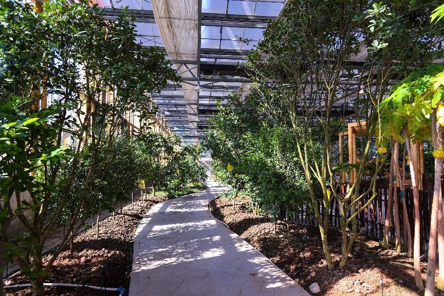 实践团跟随何沛雯的脚步,首先来到了“农科荟萃”文化馆,据她介绍此文化馆将从育种、栽培、未来5G智慧智能农业等方面集中展示国内外现代农业最新农业科技。内含七彩蔬塔、奇瓜世界、叶菜森林、番茄树等四个创意景观节点。