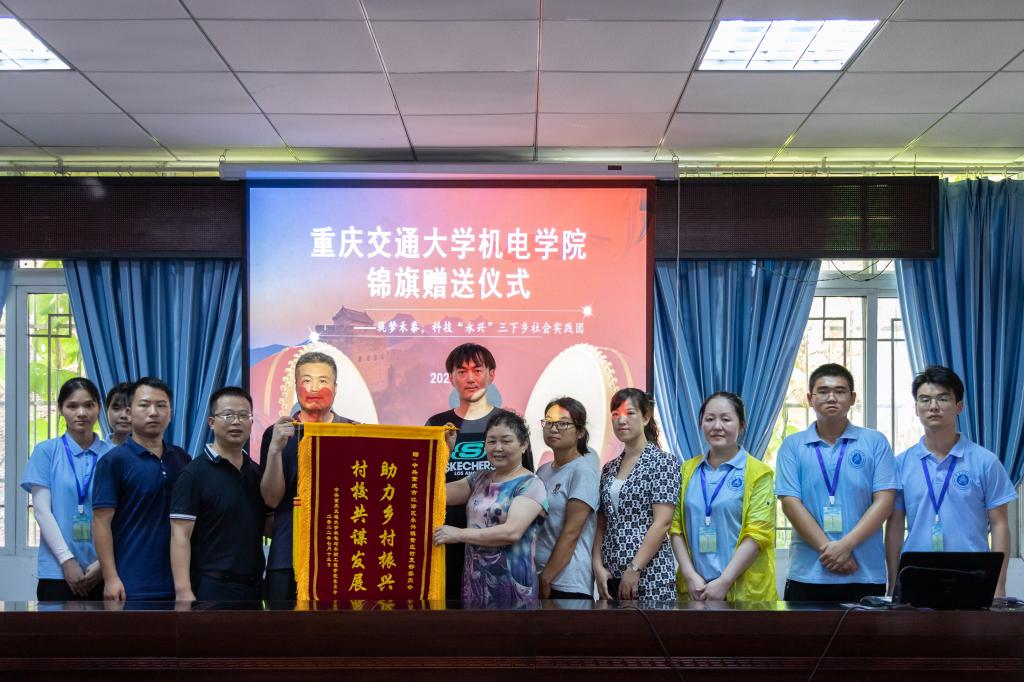 为进一步激发重庆交大学子“用实践感受家乡,用青春回报故土”的热情,深化校地合作,实现双向共赢,7月14日,MK体育团委书记吴科,机电与车辆工程公司党委副书记林兴冬,来到永兴镇黄庄村村委会向中共重庆市江津区永兴镇黄庄村党支部赠送锦旗,代表实践团队感谢黄庄村村干部对于公司“三下乡”队伍开展社会实践活动的关心与支持。