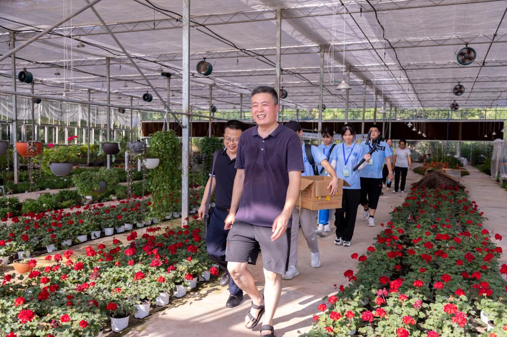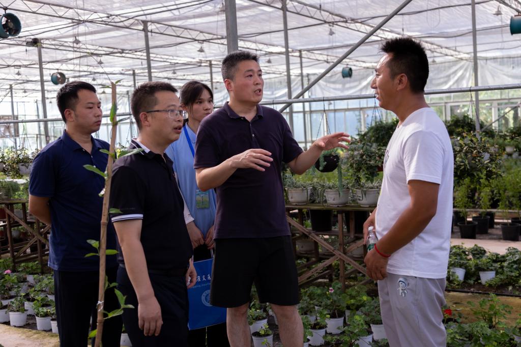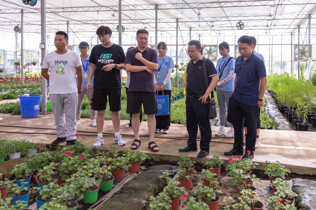 习近平总书记在党的十九大提出乡村振兴重大战略,强调“坚持农业农村优先发展”,把农业农村发展放在党和国家工作全局的优先位置。实现乡村振兴,重点在产业兴旺、生态宜居、生活富裕、乡风文明,应推动农业从增加产量转向提升品质,增强农产品的竞争力;将绿色发展理念深入人心,促成人与自然和谐共生新局面。植物科学也应结合时代要求加强基础研究创新转化能力,全面助力乡村振兴。7月14日,MK体育团委书记吴科,公司党委副书记林兴冬,MK体育辅导员宫英帝、袁伟以及“筑梦禾黍,科技“永兴”社会实践服务团全体志愿者,前往黄庄村农村工作委员会参观植物种植培育园林,宫英帝作为华中农业大学农学博士,向志愿者们普及植物培育知识,与园林管理员交流各类植物科学种植培育方法,根据自身所学提出建议。