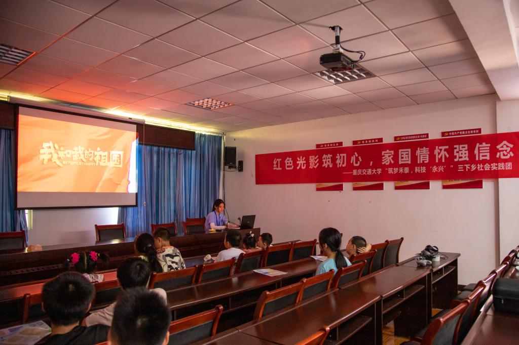 实践团举办“红色光影筑初心,加国情怀强信念”观影活动,为永兴镇黄庄村小朋友播放电影《我和我的祖国》。在7个片段中,不同时代不同人物,都与祖国的命运紧紧联系在一起,希望小朋友以自己的奉献、责任、拼搏、信念谱写出爱国的每一个音符,最终汇成一曲壮丽的爱国之歌、时代之歌。