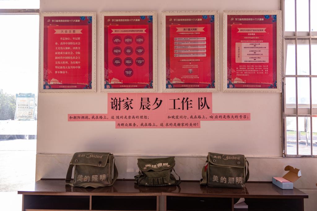 据实践团了解到,永兴镇谢家村有一只专为居民提供基础设施维修的小队——晨夕工作队,“和朝阳拥抱,我在路上,追随是崇高的理想;和晚霞同行,我在路上,响应的是伟大的号召”是他们的口号,他们的工具放在谢家村便民服务中心,随时准备出发,为人民服务。