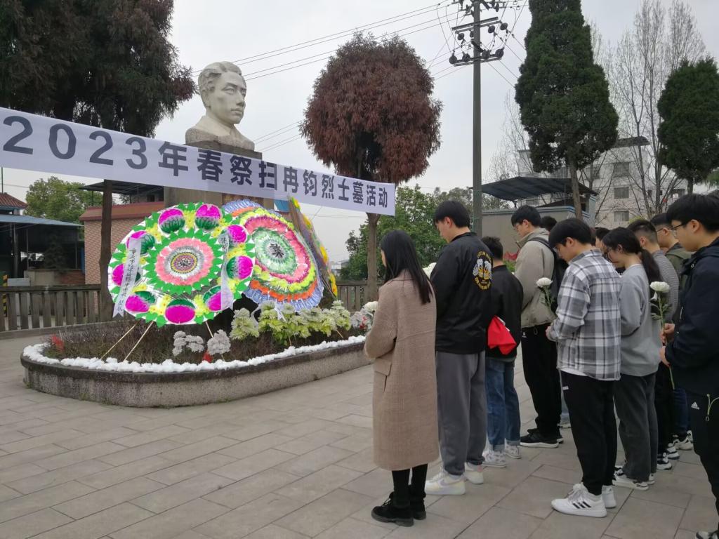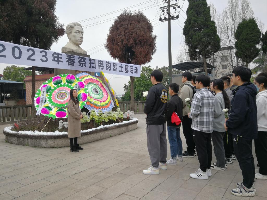 在庄严的国歌声中,全体人员肃立在烈士纪念碑前鞠躬默哀、敬献鲜花。全体人员依次为冉钧烈士献上自己手中的鲜花,向革命先烈的光辉业绩和不朽功勋致敬,寄托对先烈的无限哀思,表达深切缅怀和敬仰之情。随后,在研究生第一党支部书记宫英帝的带领下,全体党员在冉钧烈士墓前重温入党誓词,再一次郑重许下诺言,用铮铮誓言寄托哀思,表达决心,抒发继承革命传统、建设美好国家的豪情壮志。
