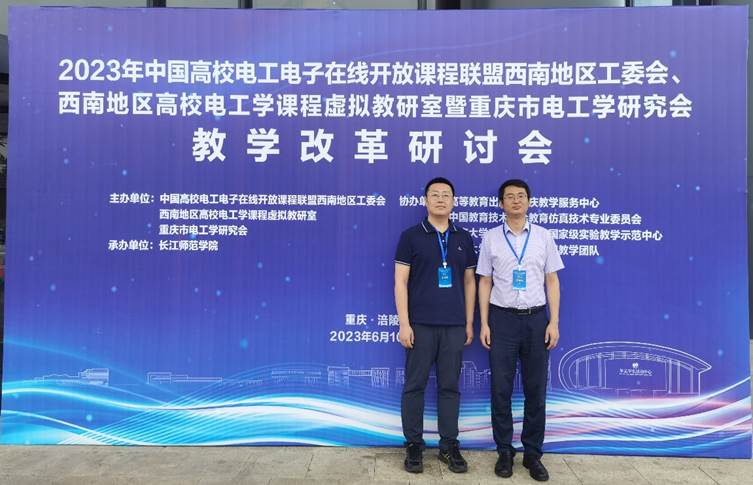 2023年中国高校电工电子在线开放课程联盟西南地区工委会西南地区高校电工学课程虚拟教研室暨重庆市电工学研究会教学改革研讨会于6月9日~11日在重庆市涪陵区召开,会议集结了中国高等公司电工学研究会副理事长、中国教育技术协会教育仿真技术专业委员会副理事长、西部高校电工学研究会副理事长、陕西省电工学研究会理事长刘晔教授,中国高等公司电工学研究会副理事长兼秘书长、重庆市高校电工学研究会名誉理事长侯世英教授等领域内知名专家,学术界、产业界50余人参加本次会议。受组委会邀请,MK体育科技创新中心主任孙世政教授、机电系副主任闫凯波博士参加会议。
