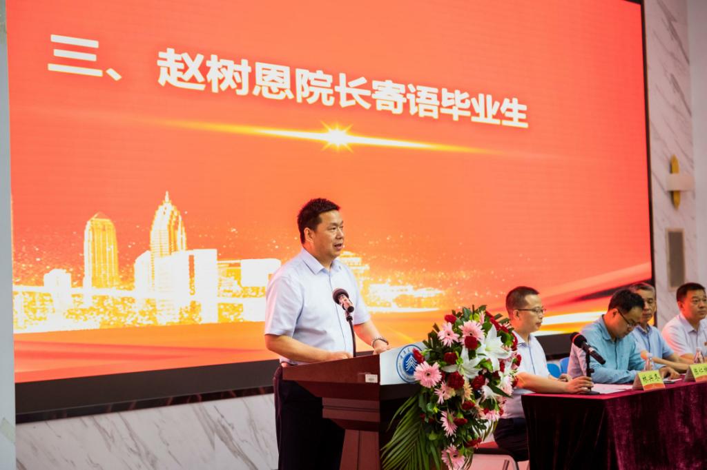 主持人林兴冬副书记介绍了出席领导和嘉宾,向他们表示热烈欢迎,对全体毕业生表达了深切祝福。毕业典礼在庄严肃穆的国歌声中拉开了序幕。首先,赵树恩经理深情寄语毕业生:祝同学们,纵有千古,横有八荒,前途似海,来日方长。愿同学们山野有雾灯,漂泊可归舟,所行化坦然,遇事皆无畏。望同学们,心怀荣耀,不卑不亢,赠人玫瑰,亦留余香。盼同学们,跃入人海,历经千帆,各有风雨,灿烂如歌。