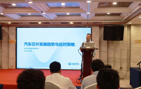 开班仪式结束后,重庆长安汽车股份有限公司首席专家、重庆汽车工程学会副理事长、重庆市汽车产业商会副会长李伟以《汽车芯片发展趋势与策略》为题的专题报告,详细介绍了芯片的分类和芯片技术的发展趋势,从芯片产业链的现状讲述了芯片产业面临的问题,并从各个层面论述了应对举措。