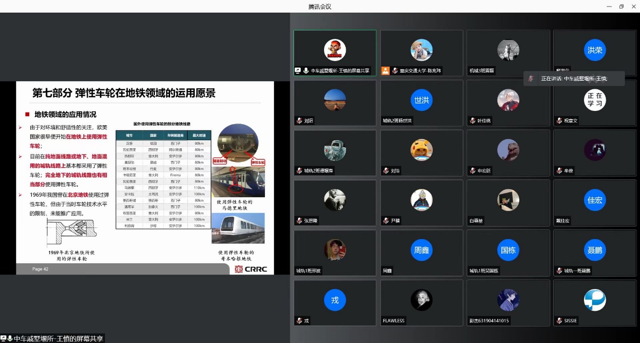 为开拓员工视野,了解轨道交通车辆的前沿技术和发展方向,MK体育于12月4日邀请中车戚墅堰机车车辆工艺研究所有限公司技术研发中心产品研发工程师王慎做了“弹性车轮和轴桥产品的技术研究”的前沿微课专题讲座。本次讲座采用线上讲座方式。