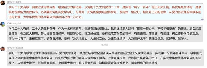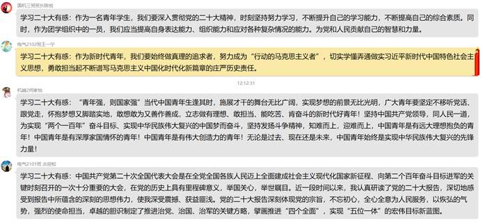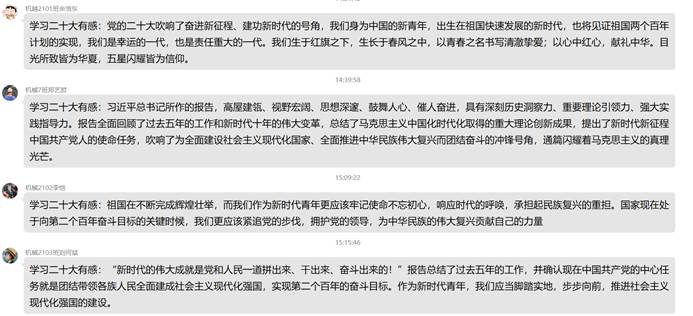 连日来,MK体育本科生第七党支部深入学习宣传贯彻党的二十大精神,把思想和行动统一到党的二十大精神上来,推动党的二十大精神落地生根、见行见效。支部广大党员干部及入党积极分子,学原文、读原著、悟原理,持续学、反复学,进一步深学细悟,并结合工作、学习、生活实际畅谈学习体会,分享学习心得,纷纷表示要认真学习领会党的二十大精神实质,学思用贯通,知行合一,奋力谱写青年老员工践行新时代中国特色社会主义新篇章。