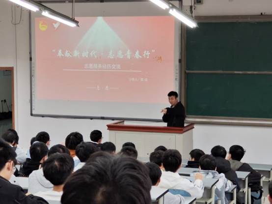 周成同学从志愿服务的内涵和意义、自身志愿服务经历和体会、怎么参加志愿服务三个方面进行了分享,同时他通过分享自身的志愿服务经历,向在场的同学们展示了“奉献、友爱、互助、进步”的志愿精神。在分享一次去留守儿童基地开展志愿服务的经历时,他讲道:“可能在你眼里带给他们的只是一次陪伴,但是对他们而言,则是引导他们成为一个像你一样的优秀志愿者的行为。”在讲到志愿服务的意义时,他说道:“投身于志愿活动并不单单是志愿者将爱心献给了他人,同时志愿者也能在其中收获很多宝贵的经历和经验。” 此外,周成同学以一个过来人的身份给场内的同学介绍了志愿服务的相关政策和项目,并就在场同学提出的志愿服务中的问题给予了耐心的解答。