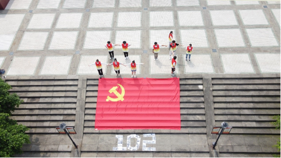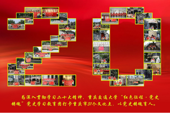 在聂荣臻元帅陈列馆广场,实践团手拉手摆出“二十”字样,用重庆红色地标图谱的老图片拼成“102”字样,传递了实践团“学习二十大 永远跟党走 奋进新征程”的坚定信念。