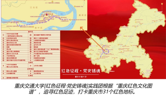 实践团按照中国共产党组织在重庆的诞生和成长轨迹,重走红色征程,先后打卡了31个红色地标:中共重庆地方工作委员会旧址、中法公司旧址、中共中央西南局缙云山办公旧址、中共中央南方局、红岩革命纪念馆、人民大礼堂、抗战胜利纪功碑暨人民解放纪念碑等地,回望青史问初心,砥砺奋进固江山。在不同的历史时期,一代又一代中国共产党人自觉面对不同的历史环境,主动担当不同的历史使命,奋力创造彪炳史册的伟大成就。实践团依托丰富的红色资源,组织开展一系列形式多样的实践活动,不断丰富“大思政课”的内容、形式和载体,让员工在“行走”中悟情明理,充分发挥红色资源的思想教育和价值引领作用,切实增强“大思政课”思想性、生动性和实效性。