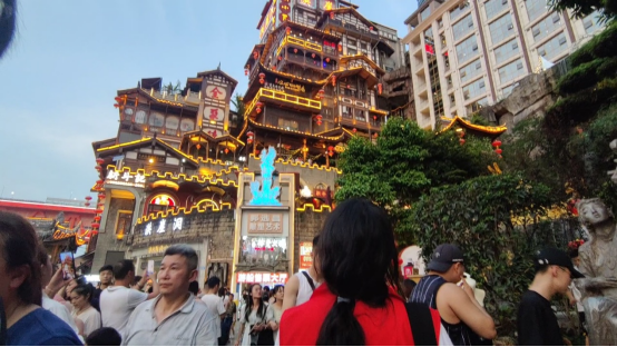 现实版“千与千寻”——洪崖洞通过开发修缮,保留历史韵味,兼具现代光彩,重现古“巴渝十二景”之一的“洪崖滴翠”及吊脚群楼,形成“一态、三绝、四街、八景”重庆洪崖洞传统风貌区的巴渝文化休闲业态,并结合“夜经济”实现“文化+旅游”、“文旅+人工智能”,实施三基色多色温LED人工智能路灯绿色照明科技节能改造,使夜景打卡成为一抹靓丽的风景线,随着科技技术的植入,为消费者带来立体的场景体验,为文旅融合发展赋能。