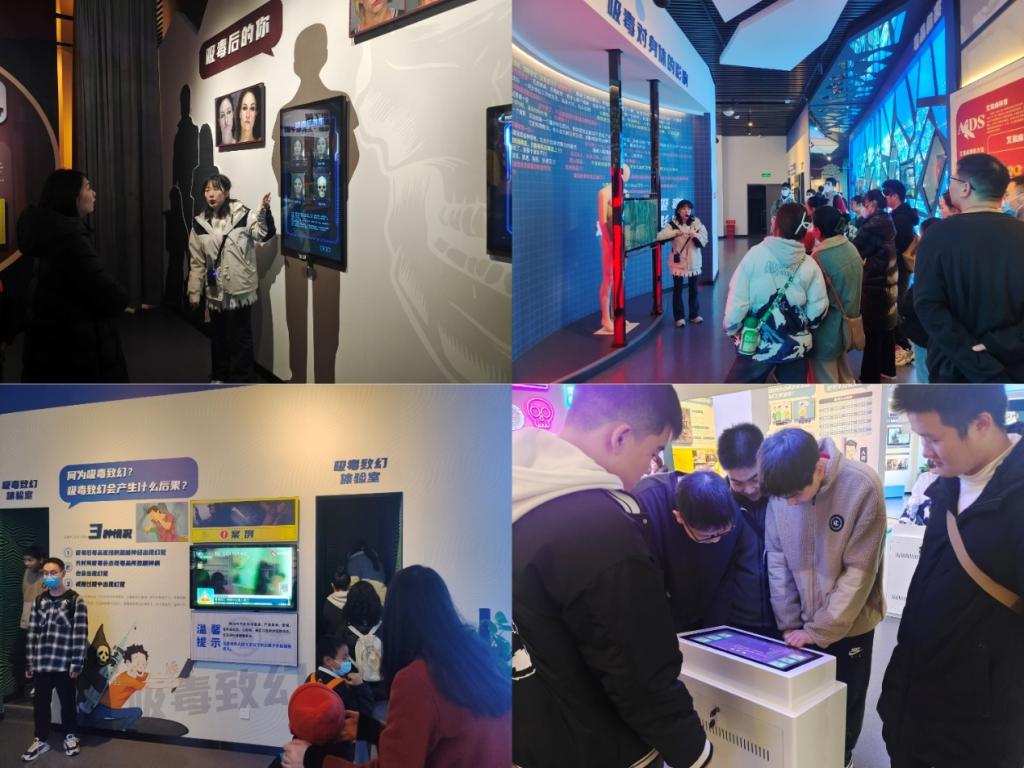 一进入基地,师生们就被一面巨大的“中国禁毒历程”墙所吸引,墙上的浮雕和图片,引导师生回顾百年禁毒历程,从晚清时期的鸦片战争到现代社会的禁毒斗争,中国在禁毒道路上经历了无数的艰辛与挫折。员工在讲解员的带领下,进入禁毒教育基地室内展厅,通过裸眼3D技术等方式,了解了毒品曾经对我们民族造成过的重大伤害,诠释了为什么要禁毒。员工们深刻认识到毒品对个人、家庭和社会的巨大危害,更加坚定了远离毒品的决心。