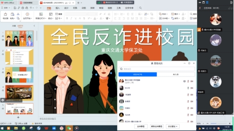 2021级研究生辅导员郑国峰以贴近生活、贴近现实的方式将防诈反诈等安全教育内容为同学们进行了详细的讲解。结合实际案例,重点介绍了电信诈骗的多种形式、种类以及危害。同时提醒同学们在网上购物、聊天、交友等活动中,要提高甄别诈骗信息的能力,保护个人财产安全,打好防诈的“预防针”。